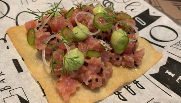 Our first tapa was a tostada de atun marinado.