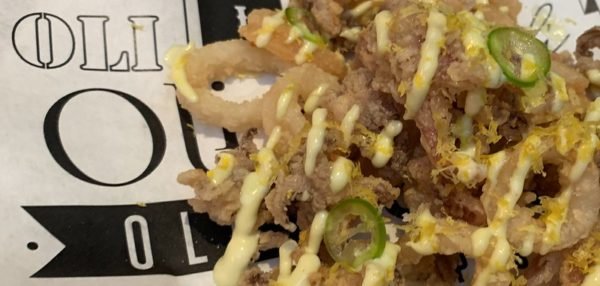 Sourcing squid is, perhaps, more important than cooking squid and, generally speaking, the smaller they are, the less rubbery they are. Oli’s calamare rings were tiny, plus there were lots of tentacles, so there was next to no chew necessary. The batter was light and fluffy with no greasy cooking oil taste. A just-right amount of wasabi cream, lemon zest and mini jalapeños topped the squid.