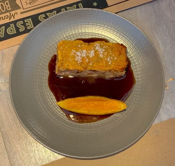 The sweetest, juiciest, most luscious young pig was chopped and formed into a rectangle, then topped with a salty pork rind crust. On the side was an orange wedge that came with instructions from our waiter: “Don’t squeeze the orange, eat it.” We did and we also decided we would have Oli’s taquito de lechón again. Very soon.