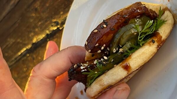 The yeast-leavened bun isn’t the best. Much heavier than most. Inside the bun though there’s a treasure. The smoked pork belly oozes rich, melt-in-our-mouth flavors.