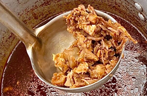 She told us that short ribs and shanks are his preferred parts of the cow. Pasilla and guajillo were chiles that were included. There was cloves, all-spice and cinnamon in the spicing.