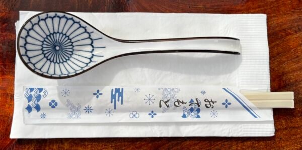 We admired the look and practicality of the Asian spoons and put on our gimmicky bibs.